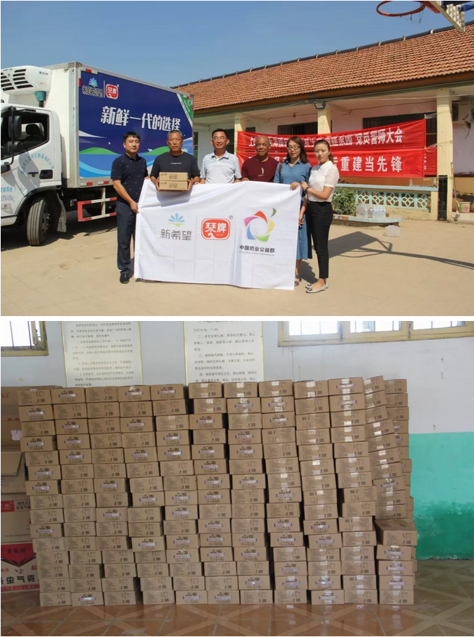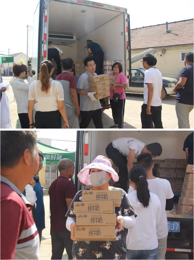 一方有難八方支援,災(zāi)難發(fā)生后中國奶業(yè)公益群向群內(nèi)發(fā)出倡議,呼吁自愿參與為災(zāi)區(qū)奉獻(xiàn)愛心,奶業(yè)各企業(yè)紛紛行動起來,共收到86家企業(yè)和個人的愛心善款。災(zāi)區(qū)人民恢復(fù)家園最需要的是溫飽和健康。9月8日,中國奶業(yè)公益群代表、山東健源生物邢燭等愛心人士攜手新希望乳業(yè)的相關(guān)人員到壽光市上口鎮(zhèn)趙王南樓后村,為災(zāi)區(qū)人民送去愛心牛奶物資,為受災(zāi)群眾提供營養(yǎng)補(bǔ)給,幫助受災(zāi)群眾重建美好家園。