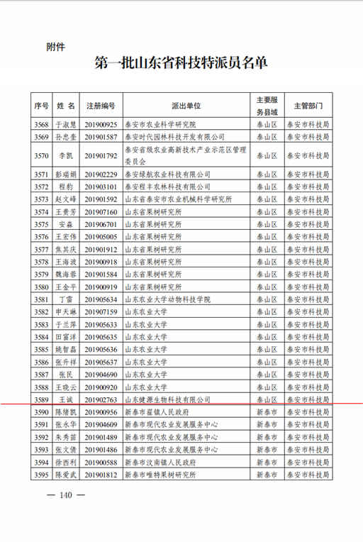 發(fā)布時(shí)間:[2020-6-22 14:58:2] 瀏覽量:3230次為深入貫徹習(xí)近平總書記對(duì)科技特派員制度推行20周年作出的重要指示精神,落實(shí)科技特派員制度推行20周年總結(jié)會(huì)議、全省科技特派員工作會(huì)議要求,按照《關(guān)于打贏脫貧攻堅(jiān)戰(zhàn)三年行動(dòng)工作方案》、《關(guān)于深入推進(jìn)科技扶貧助力鄉(xiāng)村振興若干措施》和《關(guān)于組織開展科技特派員注冊(cè)工作的通知》部署安排,進(jìn)一步加強(qiáng)科技特派員選派工作,現(xiàn)名單予以公布,山東健源生物科技有限公司董事長王誠被選任為第一批山東省科技特派員。