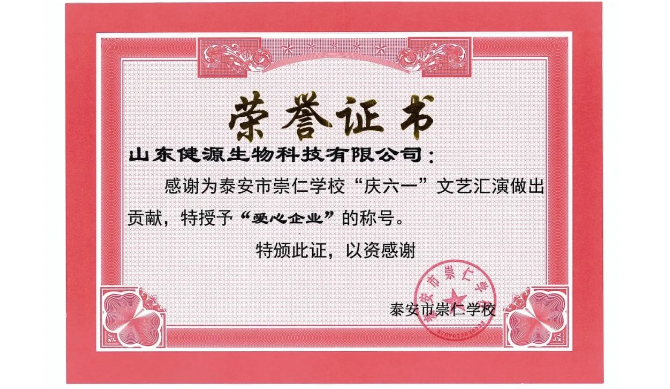 山東健源生物科技有限公司被授予“愛(ài)心企業(yè)”稱號(hào)