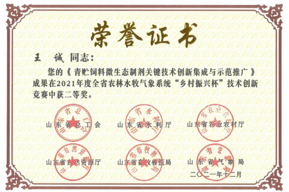 祝賀山東健源生物榮獲2021年度全省農(nóng)林水牧氣象系統(tǒng)“鄉(xiāng)村振興杯”技術(shù)創(chuàng)新競(jìng)賽二等獎(jiǎng)