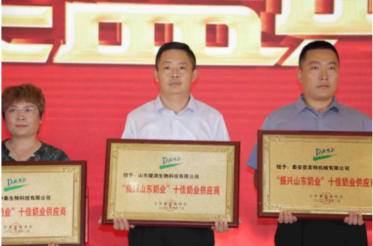 山東健源生物科技有限公司榮獲“振興山東奶業(yè)”十佳奶業(yè)供應商 稱號