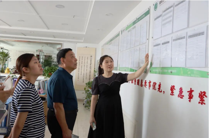 山東健源生物辦公室副主任鞏倩向領(lǐng)導(dǎo)們介紹黨建文化、健源生物企業(yè)文化.