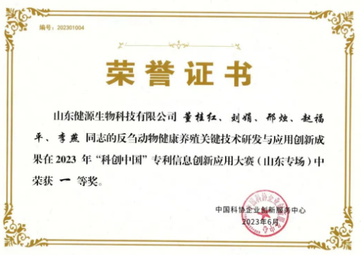 山東健源生物科技有限公司《反芻動物健康養(yǎng)殖關(guān)鍵技術(shù)研發(fā)與應(yīng)用》項目榮獲2023年科創(chuàng)中國專利信息創(chuàng)新應(yīng)用大賽(山東專場)一等獎