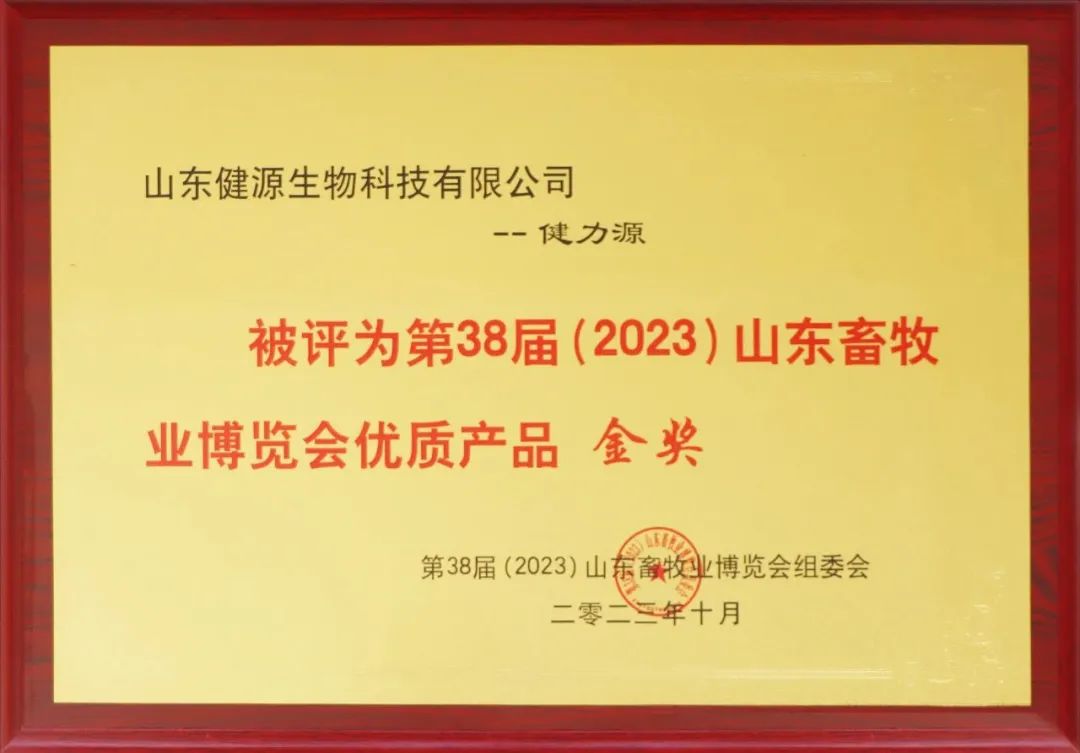 山東健源生物產(chǎn)品“健力源”獲得第38屆山東畜牧業(yè)博覽會優(yōu)質(zhì)產(chǎn)品金獎