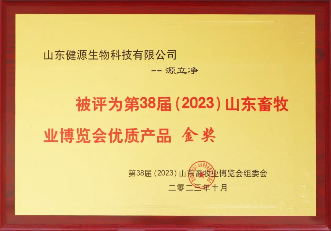 山東健源生物產(chǎn)品“源立凈”獲得第38屆山東畜牧業(yè)博覽會優(yōu)質(zhì)產(chǎn)品金獎
