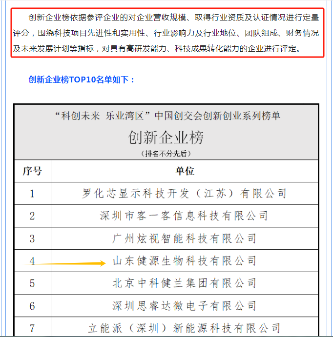 2023中國創(chuàng)新創(chuàng)業(yè)成果交易會(huì)于11月17日至19日在廣州舉辦。山東健源生物科技有限公司入選創(chuàng)新企業(yè)榜TOP10,董事長王誠入選先鋒人才榜TOP10,是山東省參展企業(yè)中唯一一家雙入選企業(yè)。