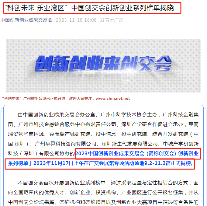 11月18日,中國創(chuàng)新創(chuàng)業(yè)成果交易會(huì)公眾號公示系列榜單TOP10.