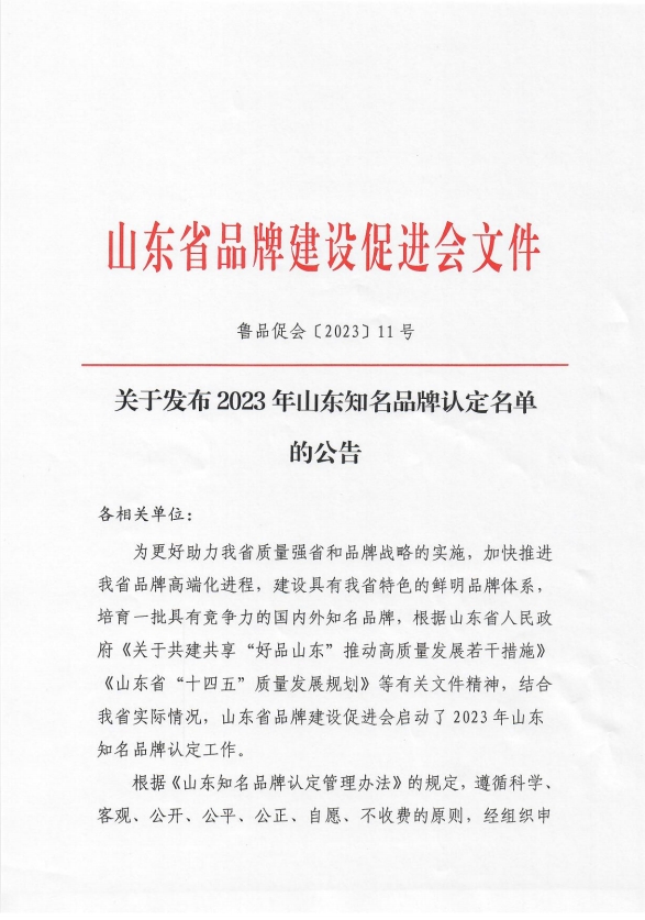 “山東知名品牌”認定,是根據(jù)山東省人民政府《關(guān)于共建共享“好品山東”推動高質(zhì)量發(fā)展若干措施》《山東省“十四五”質(zhì)量發(fā)展規(guī)劃》等有關(guān)文件精神,結(jié)合我省實際情況,山東省品牌建設(shè)促進會啟動實施2023年山東知名品牌認定工作。根據(jù)《山東知名品牌認定管理辦法》的定,遵循科學(xué)、客觀、公開、公平、公正、自愿、不收費的原則,經(jīng)組織申報、資格審查、大數(shù)據(jù)信息挖掘、信息化系統(tǒng)平臺評審、專家評審、認定專家委員會審議、認定文員會認定等工作程序,認定了409個產(chǎn)品項目,84個服務(wù)項目,獲得2023年山東知名品牌認定資格。