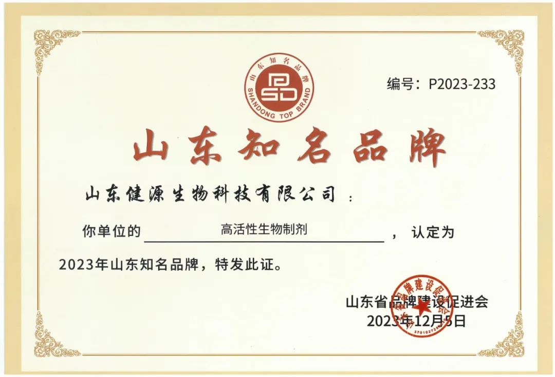 健源生物被認定為2023年山東知名品牌