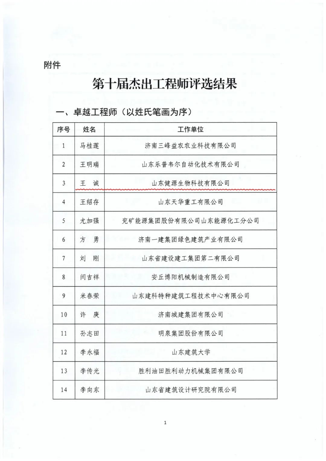 發(fā)布時(shí)間:[2023-12-20 8:8:46] 瀏覽量:3338次日前,由山東省工程師協(xié)會、山東人才發(fā)展集團(tuán)聯(lián)合舉辦的第十屆杰出工程師評選結(jié)果揭曉,山東健源生物科技有限公司董事長王誠榮獲“卓越工程師”稱 號。