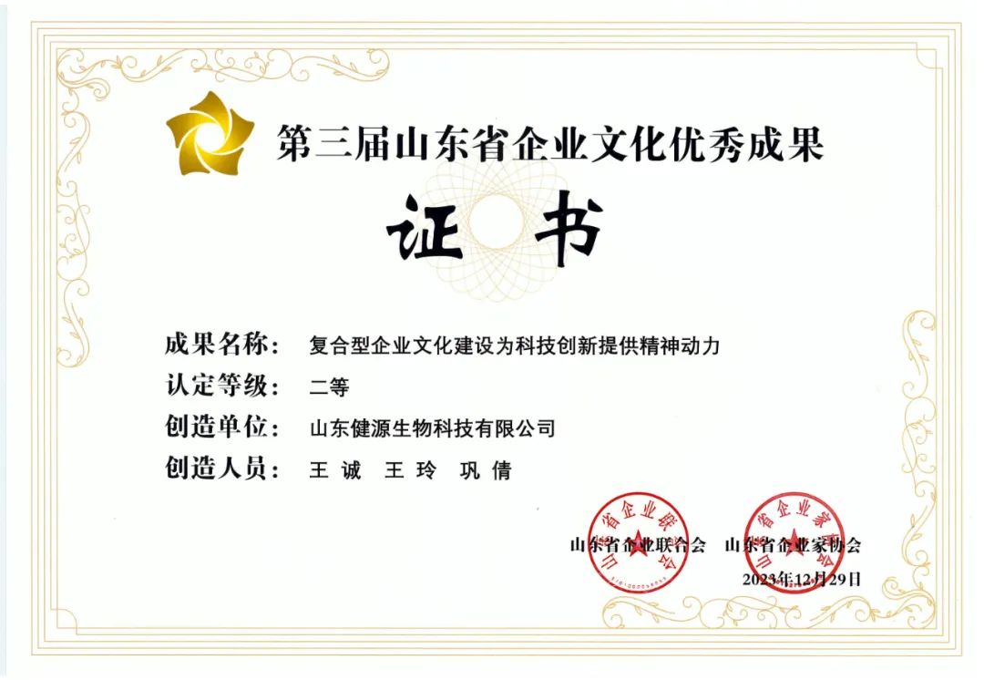 健源生物榮獲第三屆山東省企業(yè)文化優(yōu)秀成果二等獎(jiǎng)