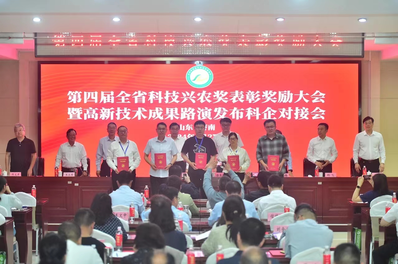 發(fā)布時間:[2024-4-28 16:49:12] 瀏覽量:2897次為貫徹落實習近平總書記在中央農村工作會議講話精神,促進農業(yè)科技成果轉移轉化,加快產學研融合催發(fā)新質生產力,實現(xiàn)全省農業(yè)轉型升級和高質量發(fā)展,2024年4月27日山東省農業(yè)科技轉化促進會于山東省農科院召開第四屆全省科技興農獎表彰大會暨高新技術成果路演發(fā)布科企對接會,山東健源生物科技有限公司作為獲獎單位受邀參加本次會議。