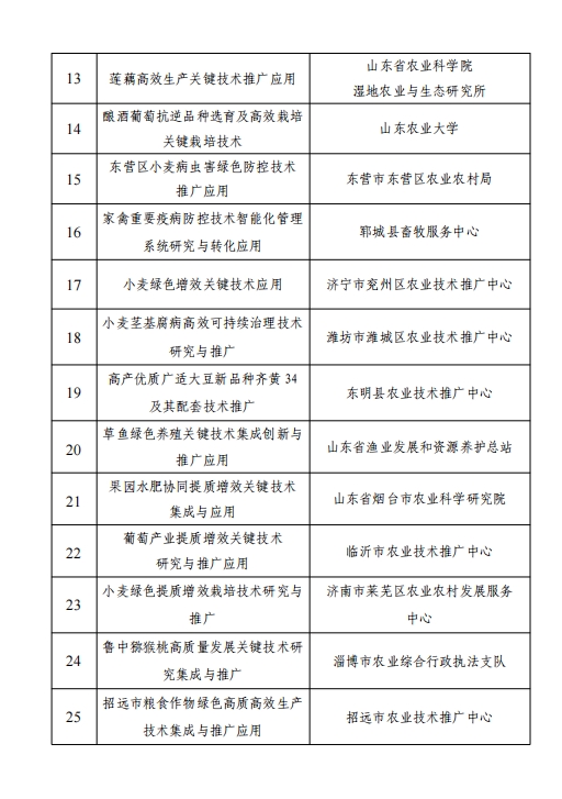 根據(jù)《山東省農業(yè)科技轉化促進會科技興農獎獎勵章程》的有關規(guī)定,經過評審委員會評審、獎勵委員會審定,評審出了第四屆全省科技興農獎先進集體10個、先進個人20人、優(yōu)秀項目特等獎2項、優(yōu)秀項目一等獎36項,優(yōu)秀項目二等獎56項、優(yōu)秀項目專利獎6項。
