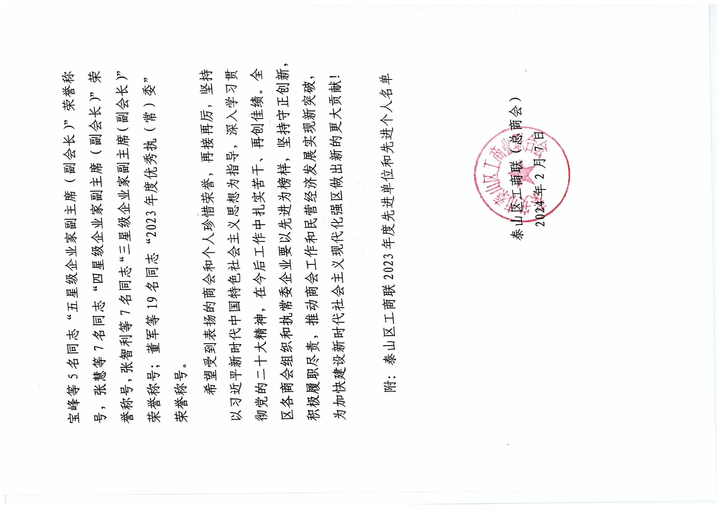 董事長王誠榮獲泰山區(qū)工商聯(lián)“2023年度優(yōu)秀執(zhí)(常)委”榮譽(yù)稱號