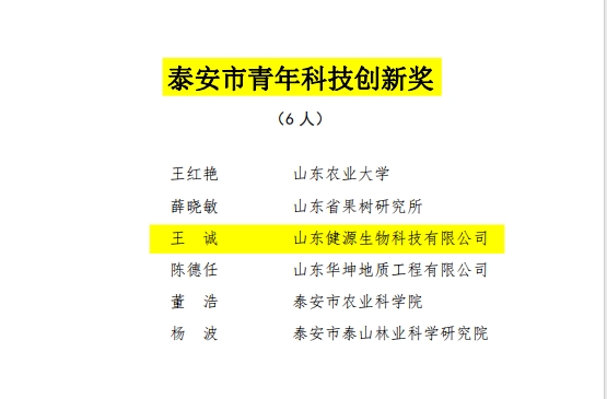 2023年12月榮獲“泰安市青年科技創(chuàng)新獎”