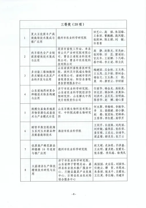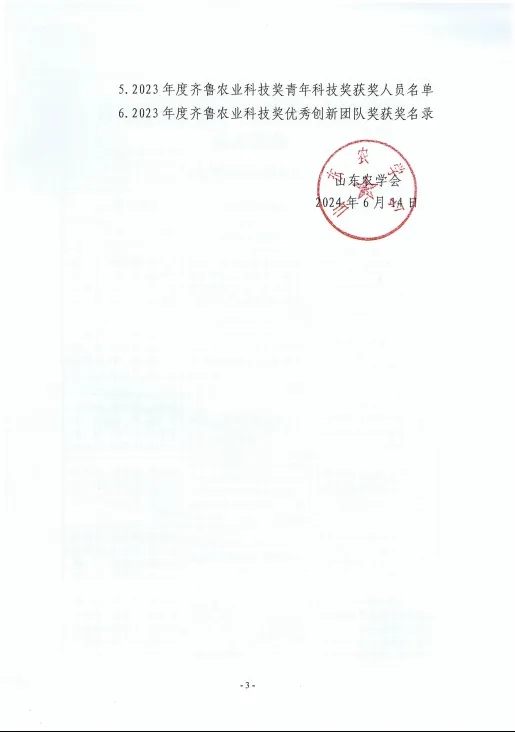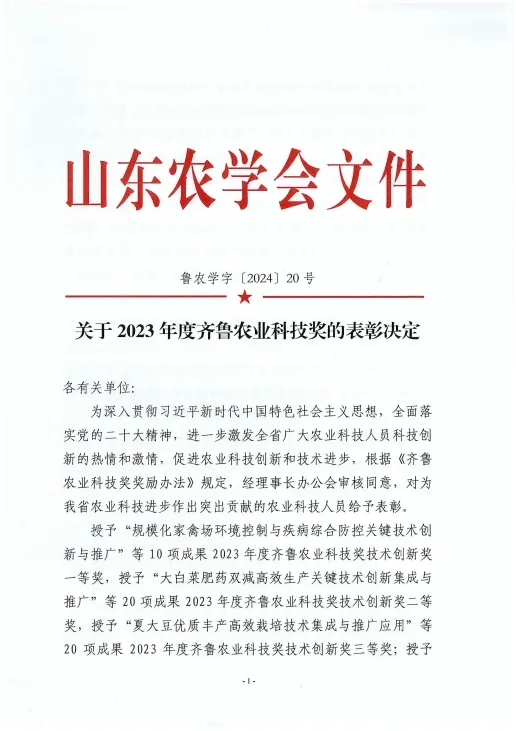 齊魯農(nóng)業(yè)科技獎是山東農(nóng)學會設立的面向全省農(nóng)業(yè)行業(yè)的綜合性科學技術獎,主要獎勵為全省農(nóng)業(yè)科學技術進步和創(chuàng)新作出突出貢獻的集體和個人,對于調(diào)動廣大農(nóng)業(yè)科技工作者的積極性和創(chuàng)造性,促進我省農(nóng)業(yè)科技創(chuàng)新,不斷提升產(chǎn)業(yè)發(fā)展水平起到了積極的推動作用。