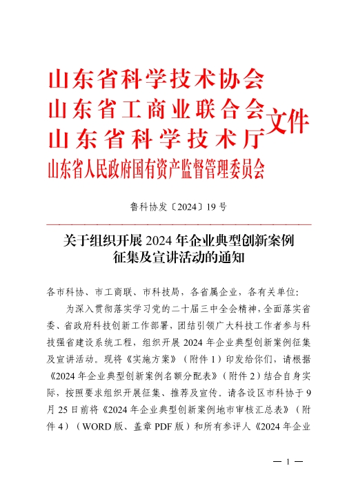 2024年企業(yè)典型性創(chuàng)新案例征集及宣講活動(dòng),是根據(jù)中國(guó)科協(xié)要求,按照《關(guān)于組織開展2024年企業(yè)典型創(chuàng)新案例征集及宣講活動(dòng)的通知》(魯科協(xié)發(fā)〔2024〕19號(hào))有關(guān)規(guī)定,依托園區(qū)(企業(yè))科協(xié)組織,對(duì)在科學(xué)研究、技術(shù)應(yīng)用、科技推廣、技術(shù)創(chuàng)新、成果轉(zhuǎn)化等工作中取得優(yōu)異成績(jī)、具有示范意義的典型案例進(jìn)行推薦,通過講述創(chuàng)新故事,弘揚(yáng)企業(yè)家精神、科學(xué)家精神、工匠精神,激發(fā)創(chuàng)新活力。