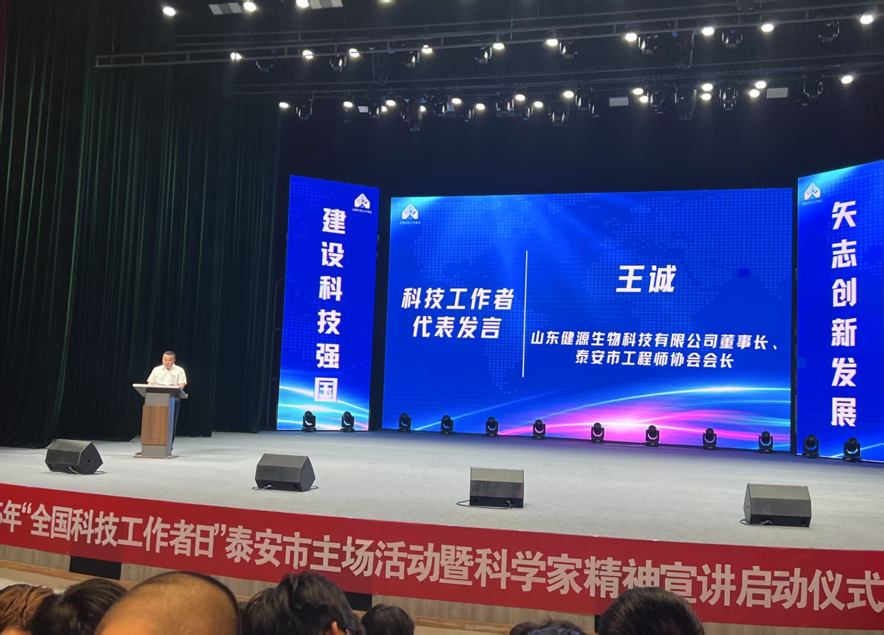 發(fā)布時間:[2025-6-2 15:3:40] 瀏覽量:1254次5 月 28 日上午,2025年 “全國科技工作者日” 泰安市主場活動暨科學(xué)家精神宣講啟動儀式在泰山科技學(xué)院隆重舉行。山東健源生物科技有限公司董事長、泰安市工程師協(xié)會會長王誠作為科技工作者代表出席并發(fā)言,與400余名科技工作者代表、高校師生齊聚一堂,共慶節(jié)日并凝聚科技創(chuàng)新共識。