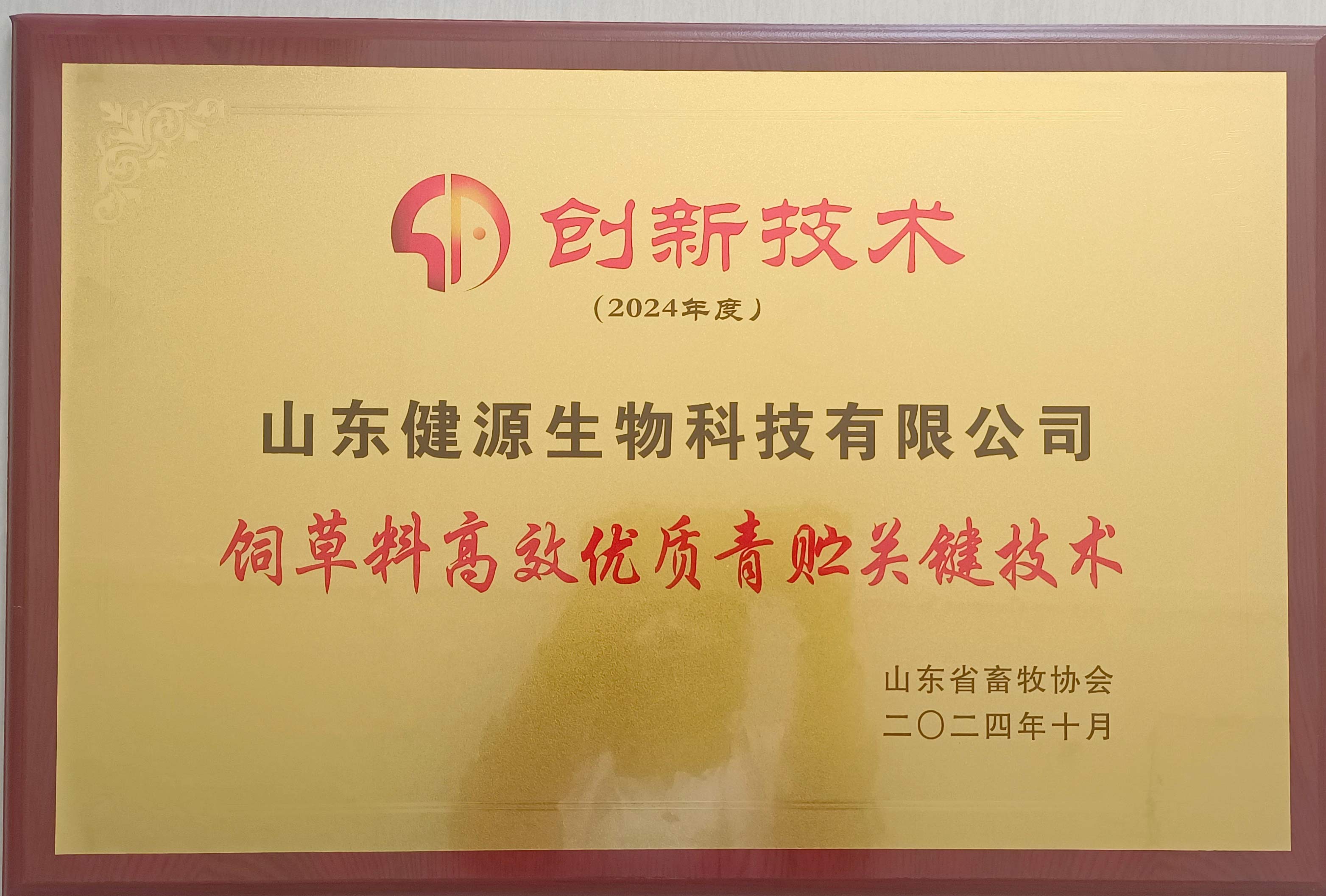 2024-10-28 熱烈祝賀健源生物榮獲2024年度山東省畜牧協(xié)會“創(chuàng)新技術(shù)”獎