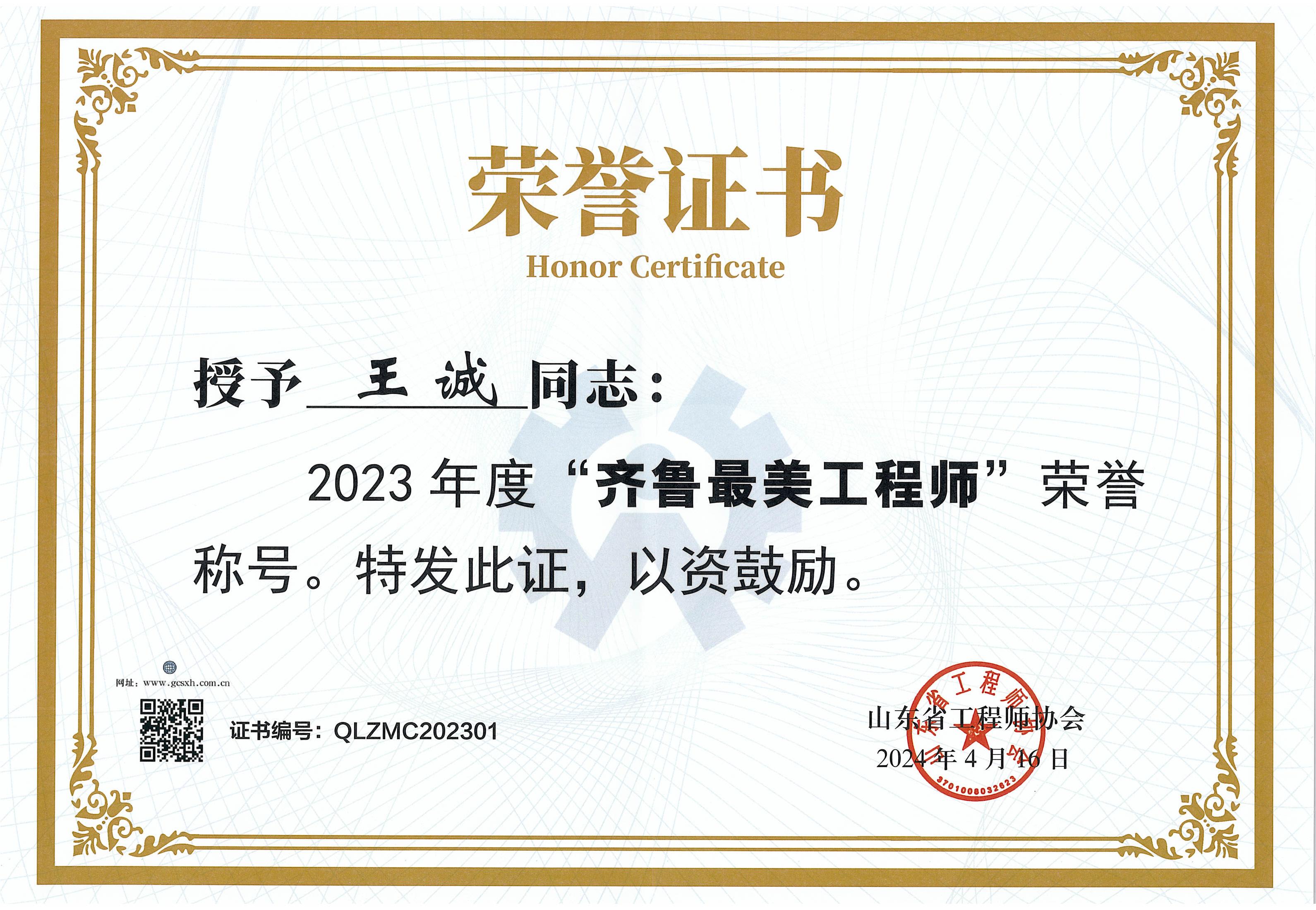 2024-7-5 王誠董事長榮獲2023年度“齊魯最美工程師”榮譽稱號