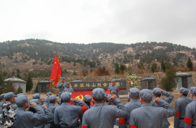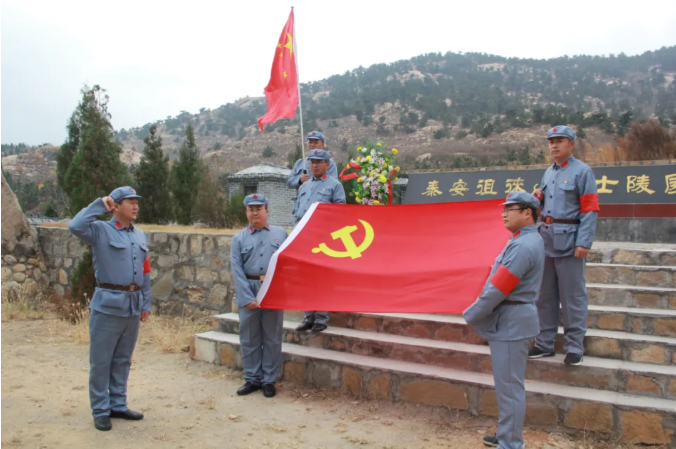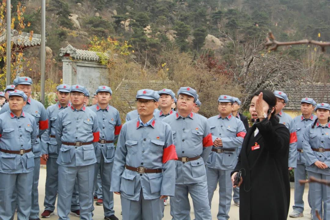 青山默默,松濤陣陣,在莊嚴(yán)肅穆的泰安徂徠山烈士陵園前,向革命英烈敬獻(xiàn)花籃,緬懷革命先烈。面對(duì)鮮紅的黨旗,全體共產(chǎn)黨員重溫入黨誓詞,做出莊嚴(yán)宣誓。