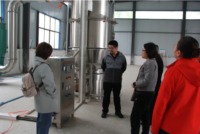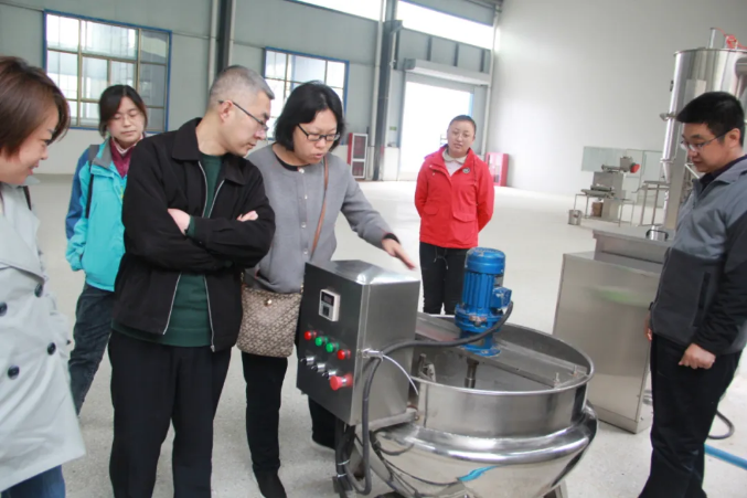 山東農(nóng)業(yè)大學(xué)劉建柱教授和藥學(xué)系老師們參觀了公司的科技研發(fā)中心、生產(chǎn)車間等,邢主任對廠區(qū)內(nèi)的環(huán)境設(shè)施和運(yùn)作流程、工藝流程等進(jìn)行了講解。