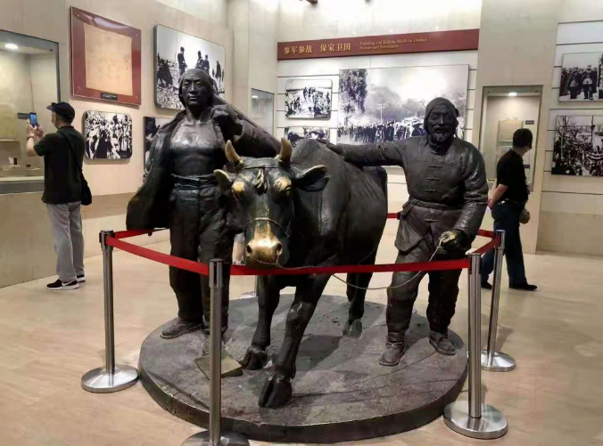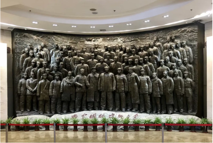 走進西柏坡紀念館,首先映入眼簾的是“新中國從這里走來”大型銅雕,老一輩革命家群像栩栩如生,堅定的姿態(tài)、磅礴的氣勢,仿佛整個都是用意志和執(zhí)著鑄造的,爆發(fā)出蓬勃的力量。