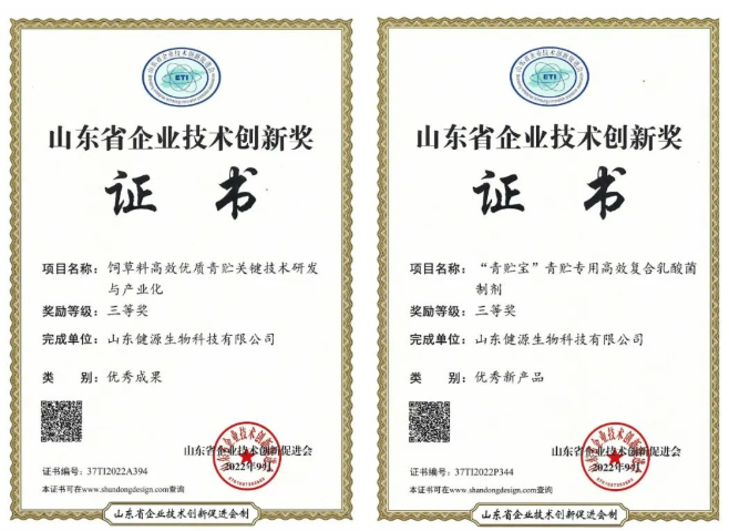 山東健源生物喜獲兩項山東省企業(yè)技術(shù)創(chuàng)新獎