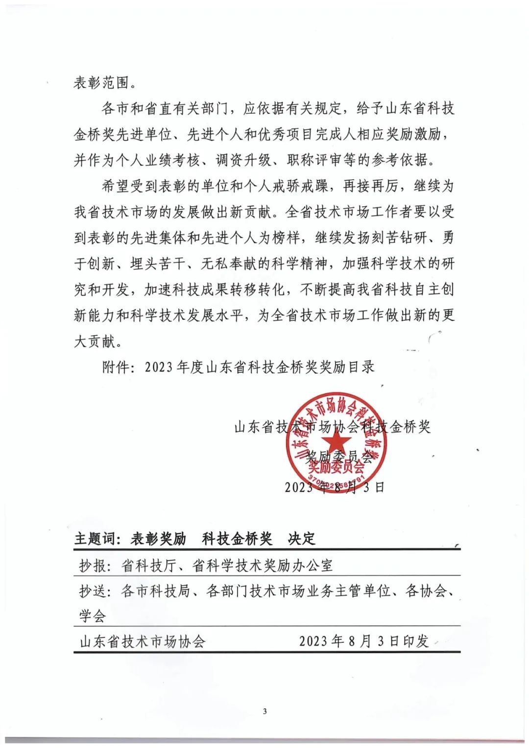 附:2023年度山東省技術(shù)市場協(xié)會科技金橋獎獎勵委員會文件及優(yōu)秀項目一等獎名單